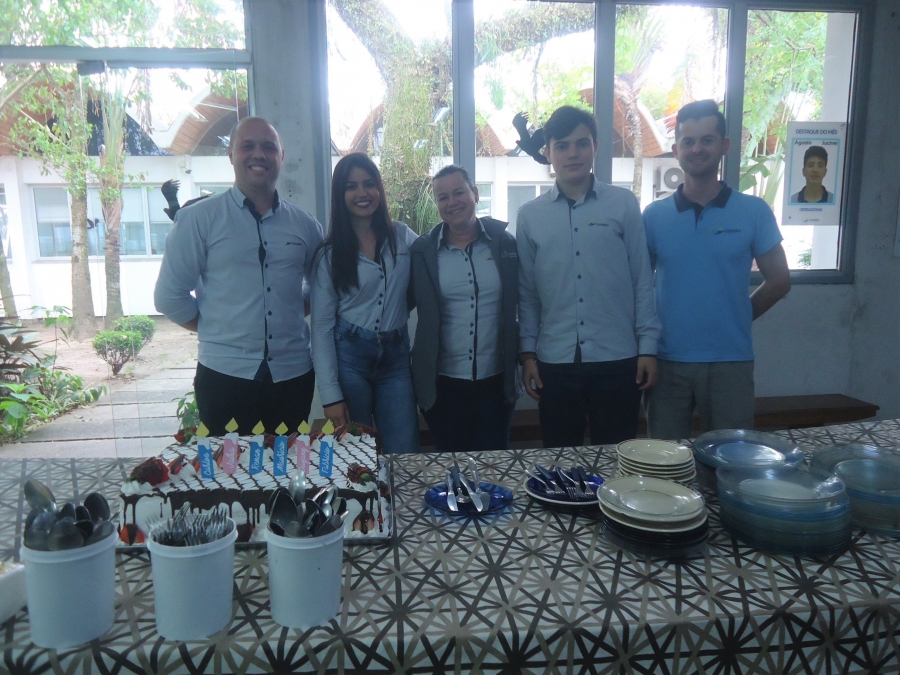 Na tarde desta quinta-feira, dia 12, os aniversariantes do mês da Contato foram festejados com uma deliciosa torta e refrigerantes no refeitório da empresa, em Araranguá. São os aniversariantes de Setembro da Contato: Dayany, Renan, Jaira, Maurício, Carlos Miguel e Fabrício.